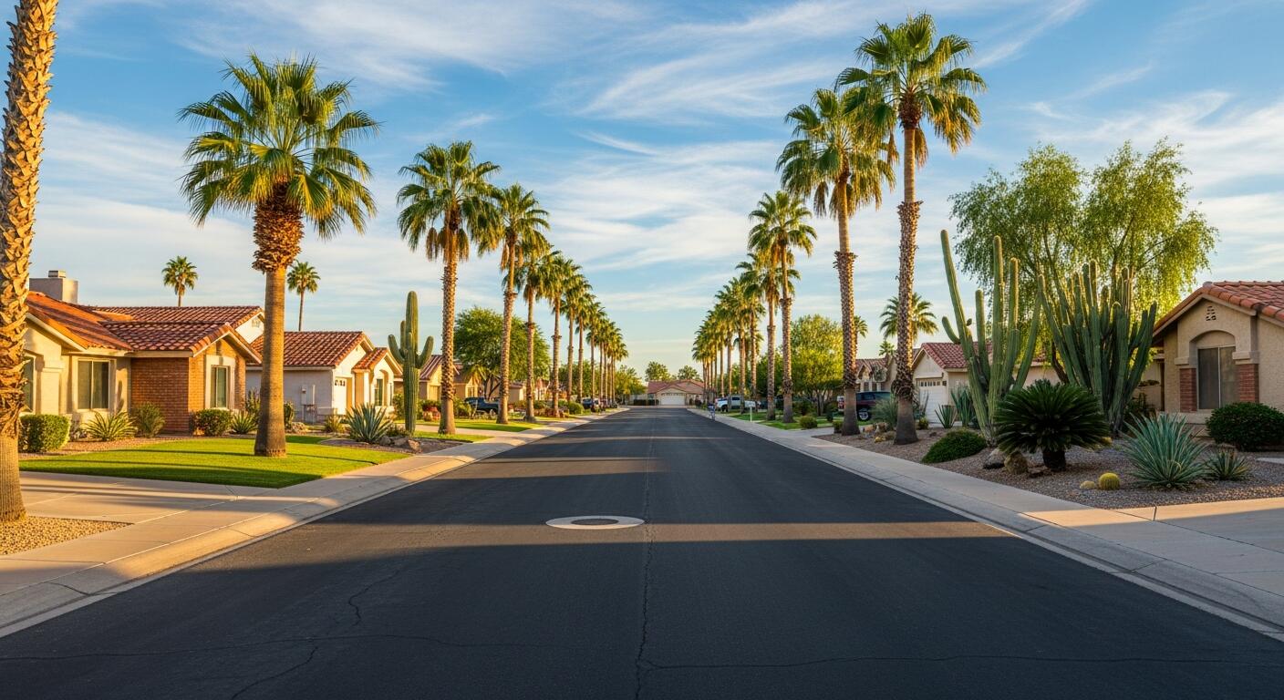 Shade structures, desert landscaping, and heat conscious design are common, reflecting how residents adapt to summer conditions.